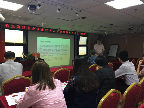 本期有53名专业技术人员参加,这次培训采用的是网络授课和面授形式相结合,培训期间学员可以通过网络学习登录“广东省信息网络安全专业技术人员继续教育平台”来进行网络学习,网络课程包括《信息安全技术概述》、《信息安全风险评估》、《信息安全整改》、《信息安全管理体系(ISO27001)》、《云计算安全》、《物联网安全》。这次培训还特意邀请了周胜利博士和张原老师讲授了信息安全态势、等级保护法律法规要求、信息安全等级保护基本要求和实施指南、等级保护测评要求等课程。