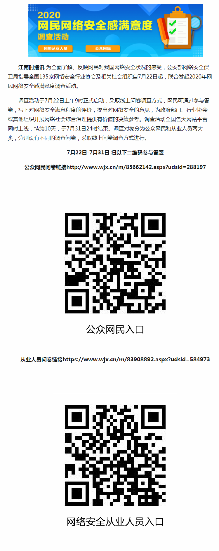 135家网络安全行业协会联合开展2020年网民网络安全感满意度调查活动