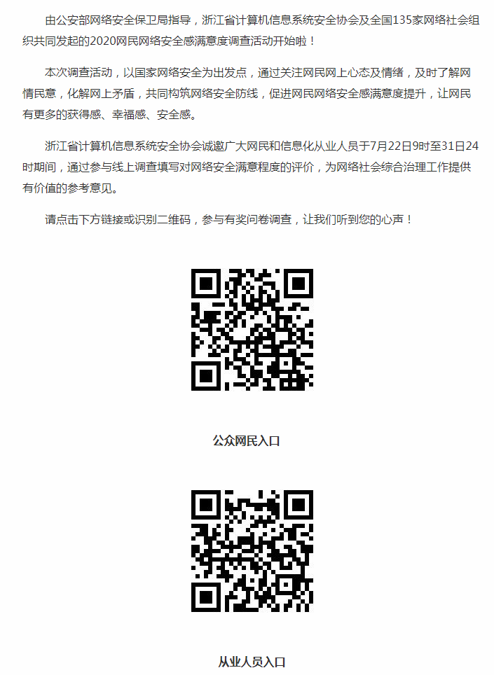 2020网民网络安全感满意度调查活动 诚邀您的参与