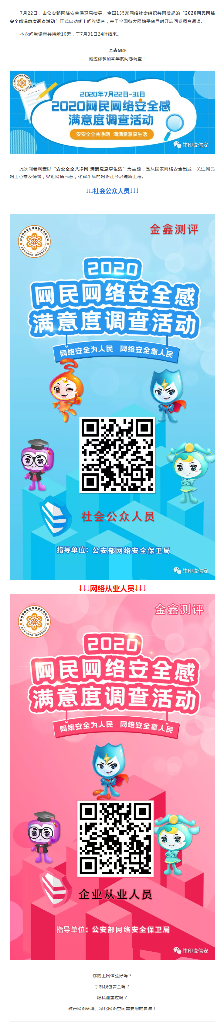 金鑫测评诚挚邀您参与“2020网民网络安全感满意度调查”