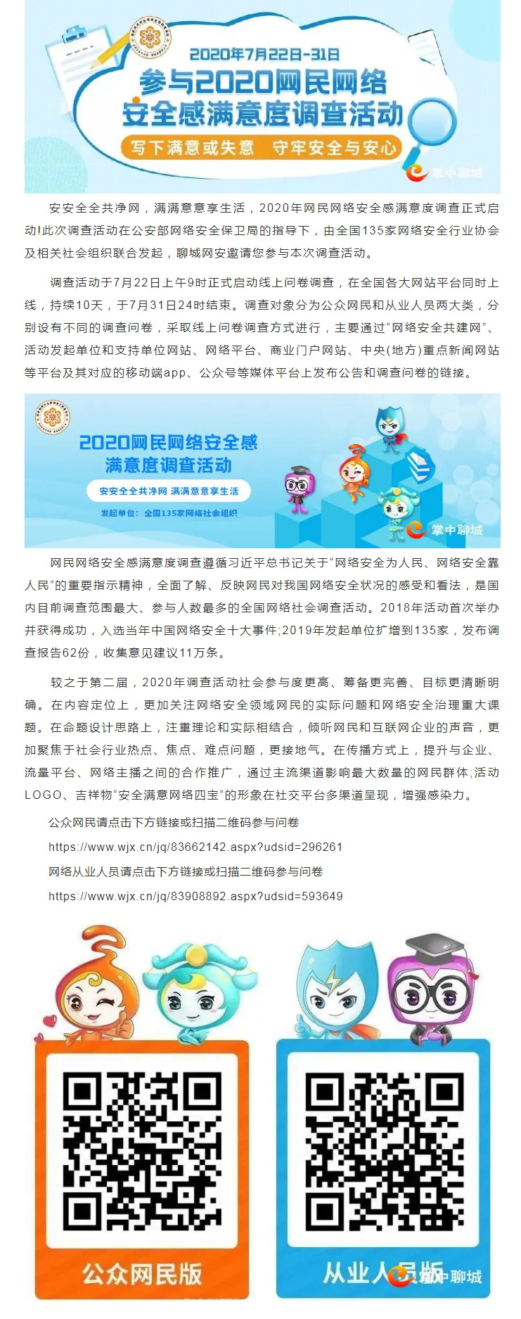 聊城网安拍了拍你,2020年网民网络安全感满意度调查邀您参与