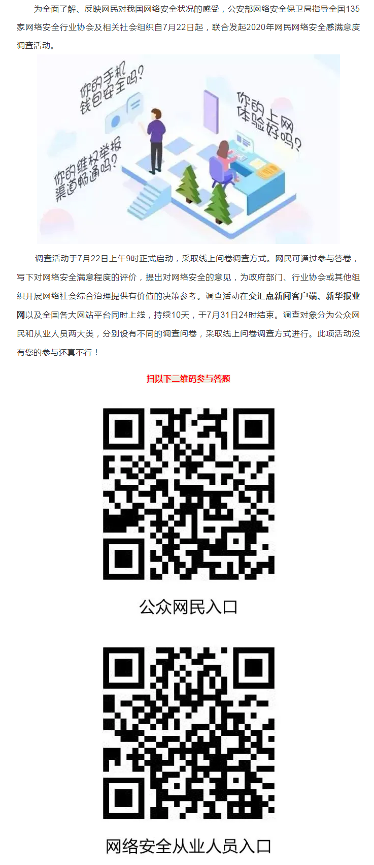 【微靖江】重要!2020网民网络安全感满意度的调查活动已启动,就等你来!