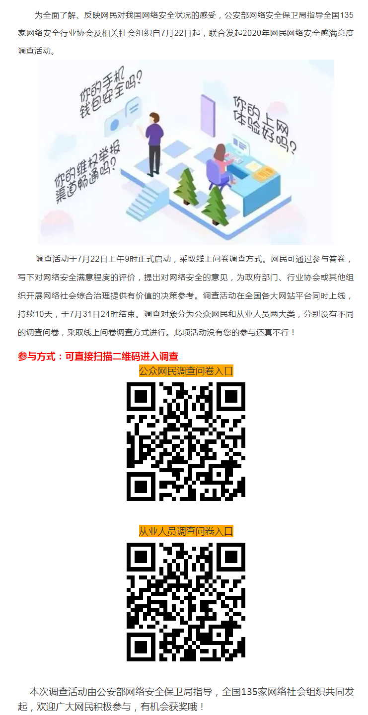 重要!2020网民网络安全感满意度的调查活动已启动,就等你来!