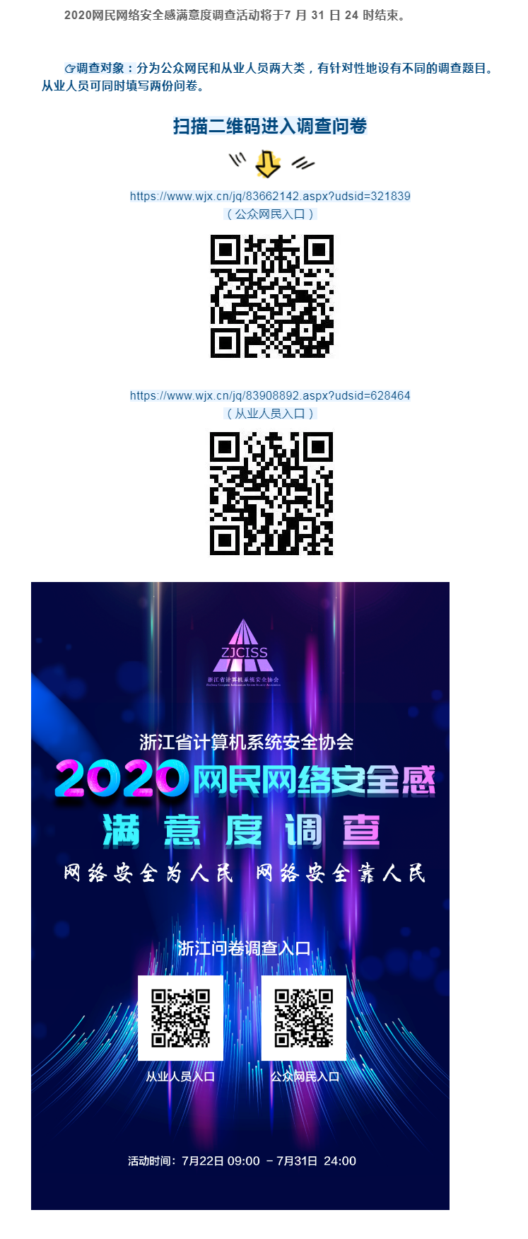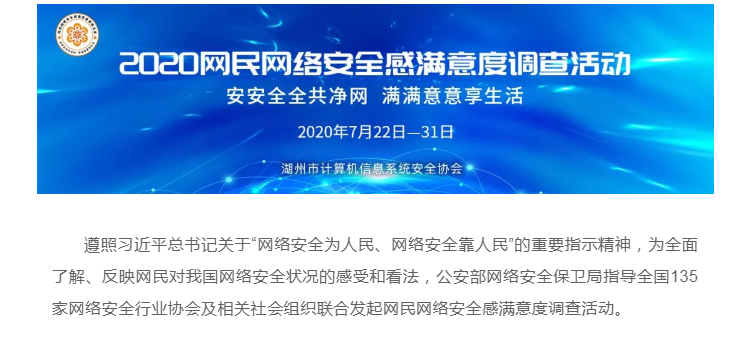 2020网民网络安全感满意度的调查活动已启动,就等你来!