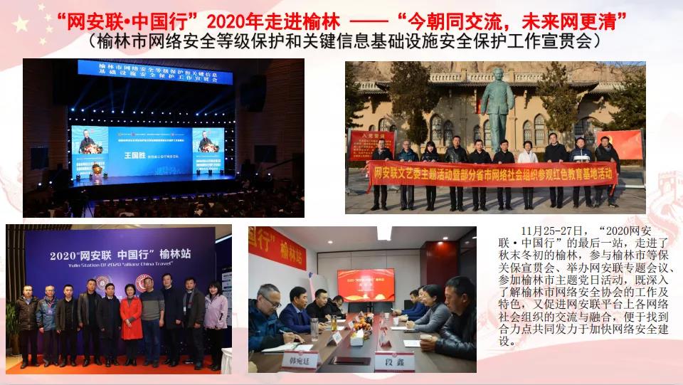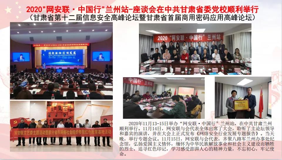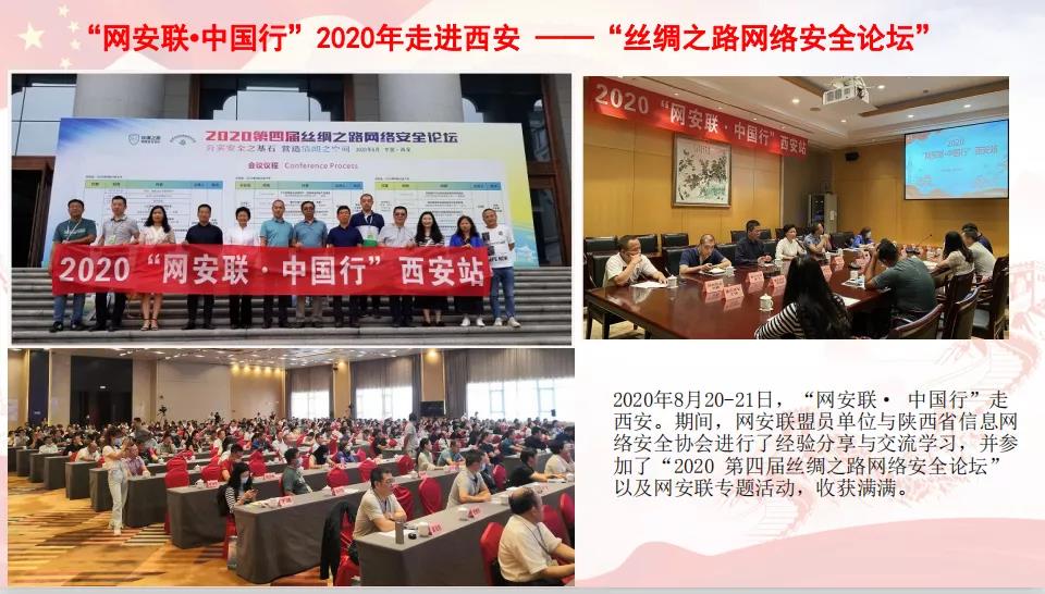疫情无情,网安有情。2020“网安联·中国行”在原定的计划上,遵照国家实时防疫要求和政策做了调整,最终走进了西安、郑州、兰州、榆林4个城市,深入了解各网安协会的工作及特色,促进网安联平台上各网络社会组织的交流与融合。不仅成功开展了网络安全相关报告发布、参加网络安全论坛、宣贯关保政策等工作,同时坚持“网安联走到哪,党建工作就做到哪”的特色,参观红色教育基地,弘扬爱国精神。