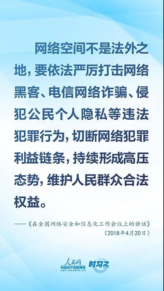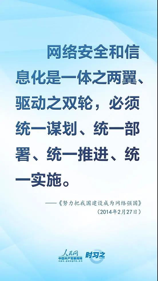 党的十八大以来,以习近平同志为核心的党中央从进行具有许多新的历史特点的伟大斗争出发,重视互联网、发展互联网、治理互联网,统筹协调涉及政治、经济、文化、社会、军事等领域网络安全和信息化重大问题,作出一系列重大决策、实施一系列重大举措,推动我国网信事业取得历史性成就,走出一条中国特色治网之道。人民网·中国共产党新闻网“时习之”栏目撷取了《习近平关于网络强国论述摘编》中有关“维护国家网络安全”的10句金句,以飨读者。
